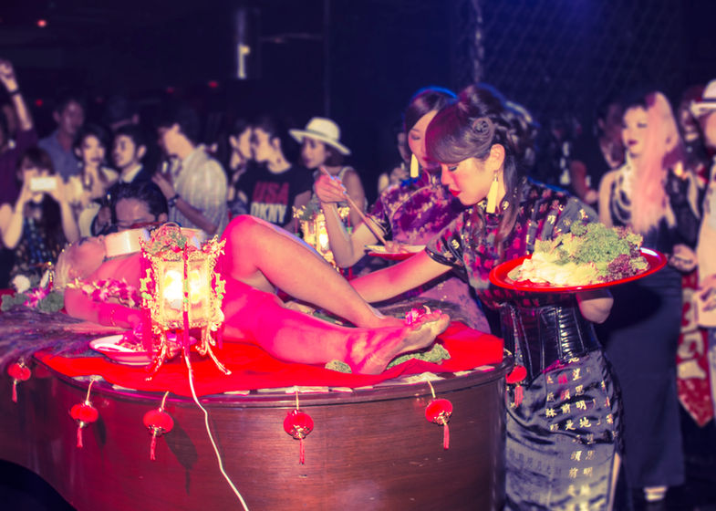 グランドピアノをステージに見立て、生演奏付きの点心と北京ダックを盛ったオールドチャイナがテーマのNYOTAIMORIショー。